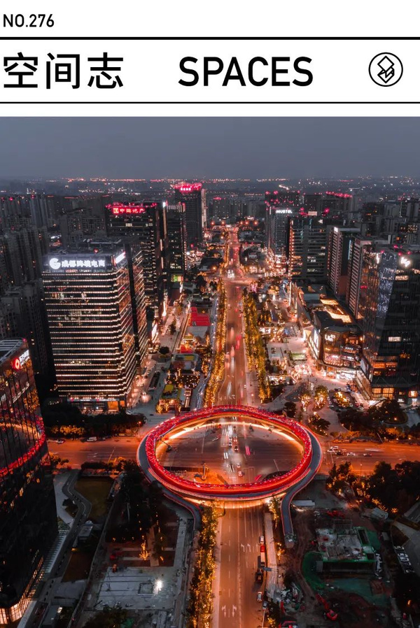 一座天橋,在夜有華彩的成都中,凝聚了一處多場景人行天橋——「交子之環」,「一築一事」將其寫在微信公眾號〈從五岔子大橋到交子之環,成都又把橋玩出「圈」?〉裡;而臺灣在一片道路上與其對話,是素淨的臺北仁愛圓環。一為道路,一為橋,二者各自盤踞城中金融區。「圓」以它的簡單、包蘊和緩慢,發展城市空間的詩性張力。緩慢迂曲的「圓」,如何身置效率迅捷的金融區?也許「人」的遠近觀看,可以解答,而觀看,有時遠到「時間裡」,有時近至「你、我」身邊。