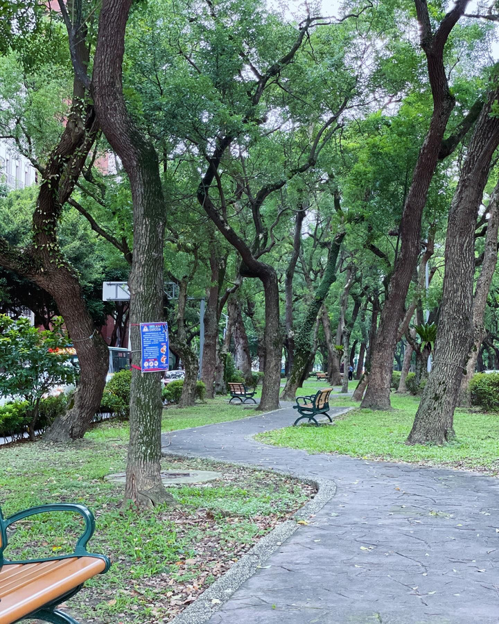 鳳凰木沿圈而栽,成排公共腳踏車可租借,仁愛圓環時時可見人們攜手漫步,也有居民賞愛此地朝霞。無論僅是道途或被當作嬉遊的園子,人或以為路太漫漫而求索,抑或閒適而欣喜,總之人不斷以生活切片的模糊與發散一直對準圓心,來往複沓。