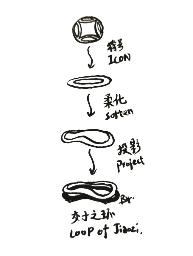 「交子」之名,出於一張自成都而出的「世界最早紙幣」,紙幣所以誕生,實因成都人慣以「玩」直面困難的生活氣性。而「交子之環」的造型紋理也自紙幣紋路轉譯而來: